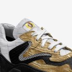 Step into luxury with Ultramega Megazon Sneakers! Gold glitter upper, black accents, and white sole. Limited edition – Buy Now and elevate your style!